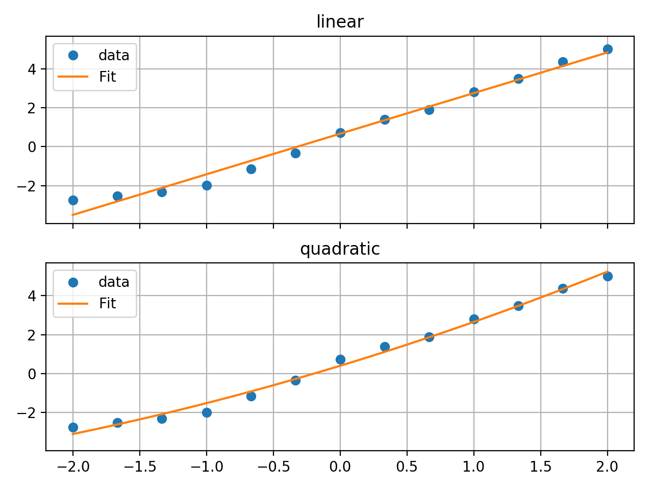 plot_fit(X, Y_noise, lambda x, a, b:a*x + b, ax1)